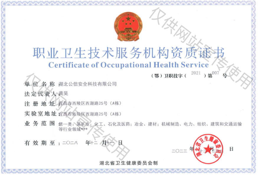 資質名稱:職業(yè)衛(wèi)生技術服務機構資質證書